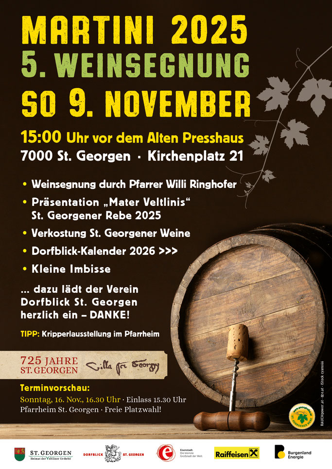 Der „Verein Dorfblick St. Georgen – Verein zur Aufarbeitung des dörflichen Lebens, gestern – heute - morgen“ feiert heuer sein 25jähriges Bestehen und es ist auch geplant, das aktuelle Vereinsprojekt „Weinbauarchiv und Schaudepot“ St. Georgen zu eröffnen.